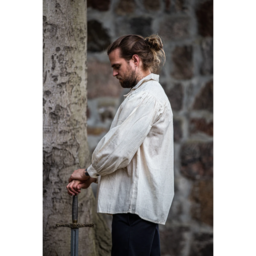 This shirt is made of cotton and has a collar. It is available in the sizes S up to XXXL in the colours black, cream and white.