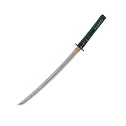 owijka trzonu jest zrobiony z zielonego jedwabiu w stylu katate-Maki podkładany z prawdziwego jaszczur, ten styl jest typowa dla walki. Posiada również czarną lakierowaną High Polish pochwa (saya) w stylu Kuroro z zamknięć (kojiri, kurigata, koiguchi) wykonane z bawolego rogu. Ma długą tang (nakago), unieruchomienie w uchwycie z dwóch kołków bambusowych (mekugi). Katana jest dostarczany w tym wspaniałym drewnianym Collector`s polu i wysokim polskim lakierowane stoją z aksamitu.