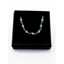 Naszyjnik składa się z naprzemiennych turkusowe koraliki szklane i pereł słodkowodnych. Sam naszyjnik wykonany jest z Srebro.